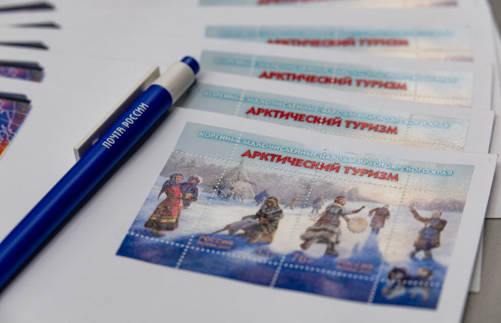 Stamp on Arctic and local indigenous peoples presented in Krasnoyarsk